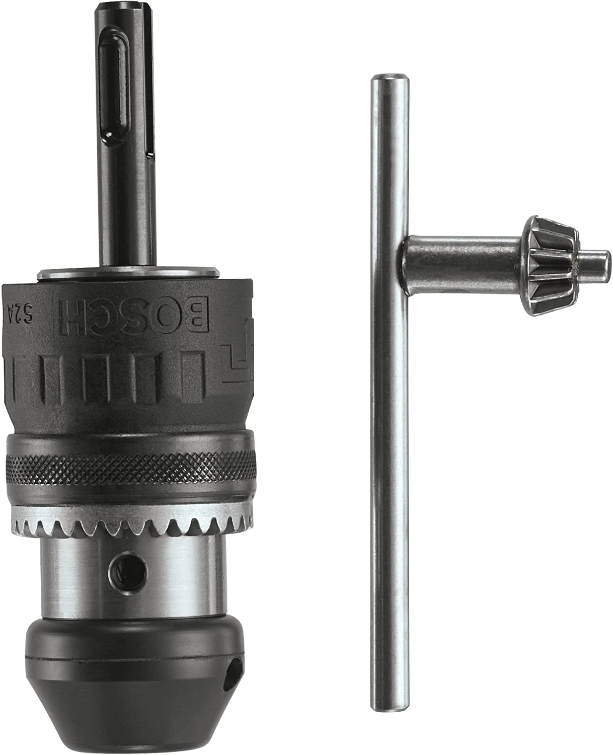 1/2″ capacity chuck with integral SDS shank. Use for straight shank hammer drill bits. For wood and metal fastening. Can also be used in the “hammer-only” mode.