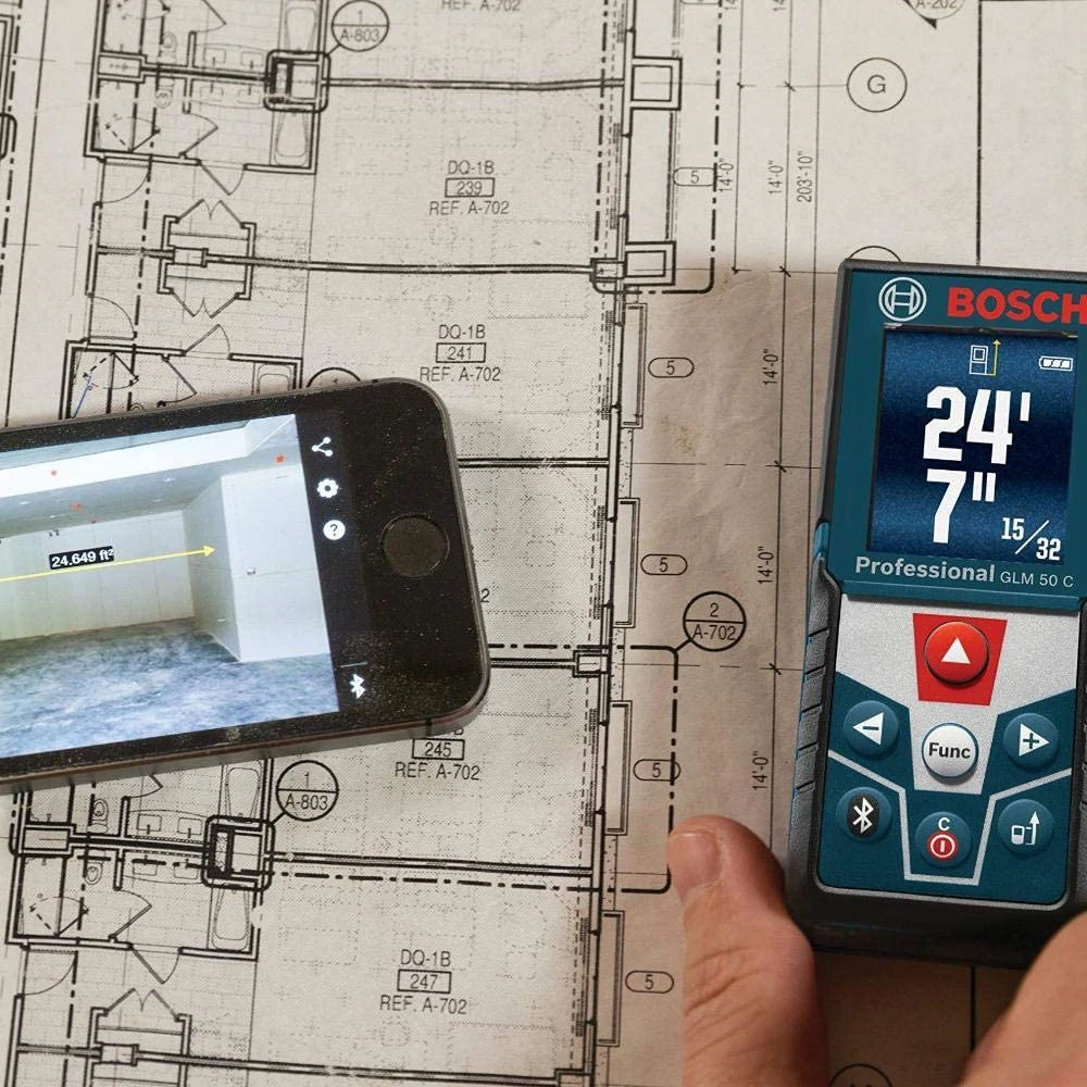 Whether it’s the upgraded backlit color display or Bluetooth® technology that’s compatible with both Bosch free apps (Measure & document and floor plan), this is a laser measure that’s ready for anything. The Bosch GLM 50 C packs a lot of functions, including the basics of real-time length, length, area, volume and indirect. All-around soft grip protection on the GLM 50 C helps the device last longer by protecting it from damage. The laser measure’s easy-to-use keypad ensures quick operation and the illuminated display provides better readability of measurements. The GLM 50 C can generate up to 10,000 measurements per battery supply. Range is 165′.
