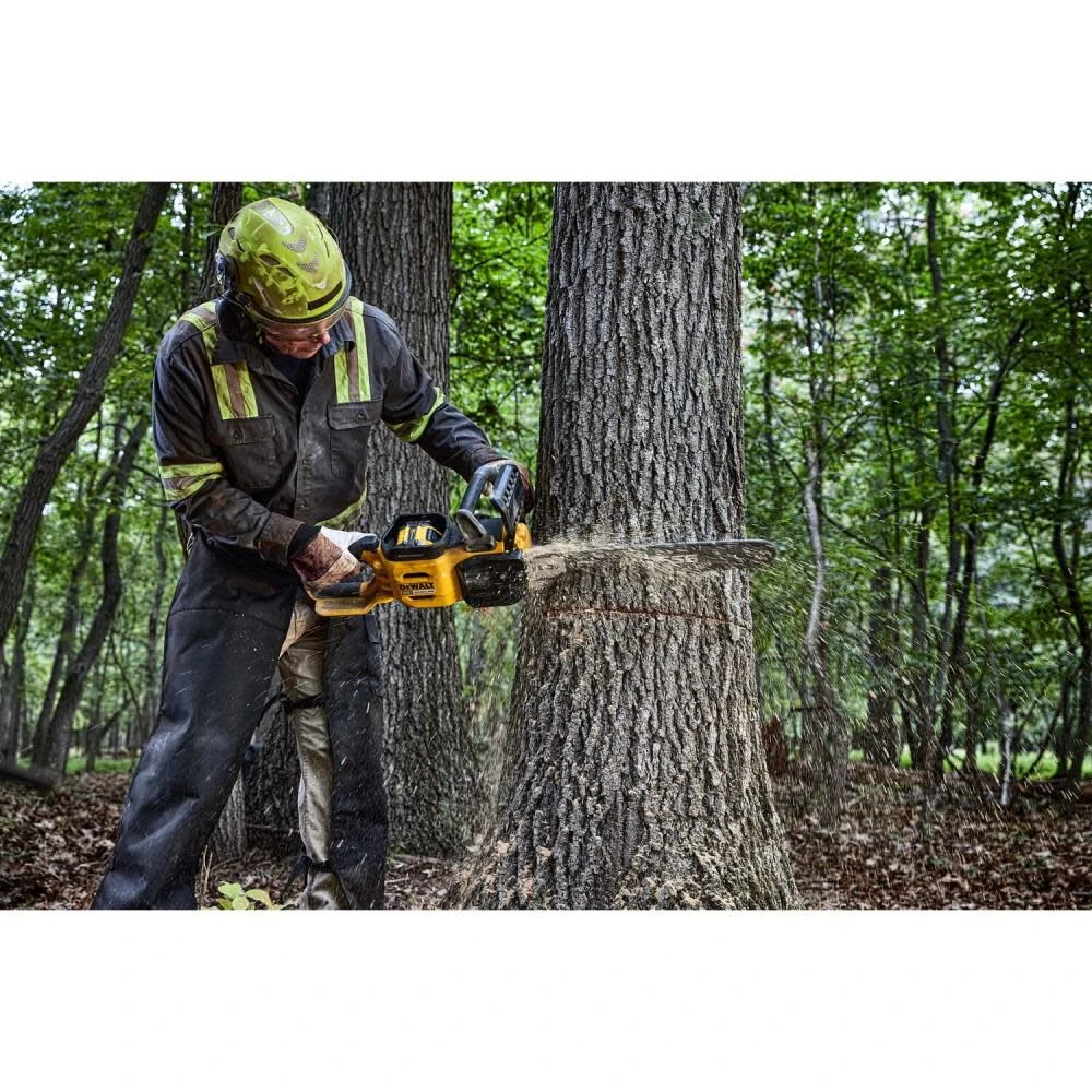 - FAST CUTTING THROUGH THICK WOOD: Cuts through 17″ white oak log as fast as 18 seconds using DCB612 battery