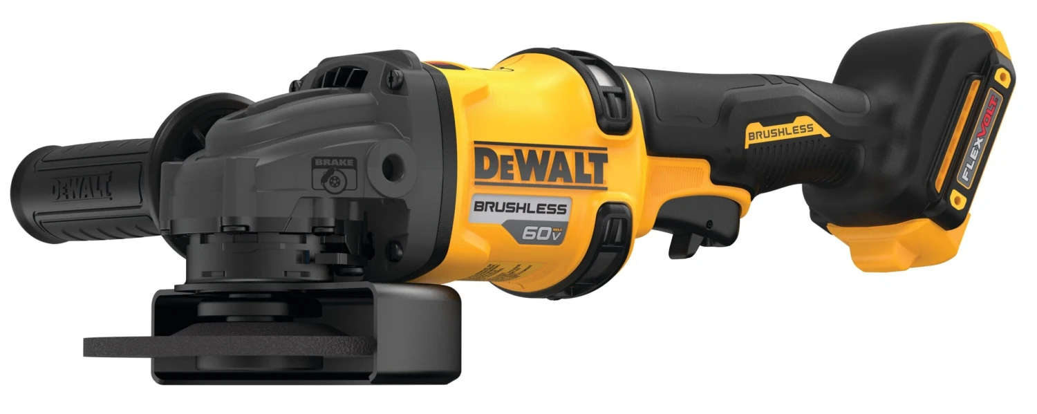 Our most powerful tools just got better with the FLEXVOLT 60V MAX 4-1/2″ – 6″ Grinder. It has up to 30% more power than the DCG414 60V MAX Grinder with 2300 max watts out. This grinder delivers 13 Amp motor equivalent power with a no-load speed of 9000 rpm. It’s part of our PERFORM & PROTECT product line with Kickback Brake and the Anti-Rotation E-CLUTCH System. Battery and charger sold separately.