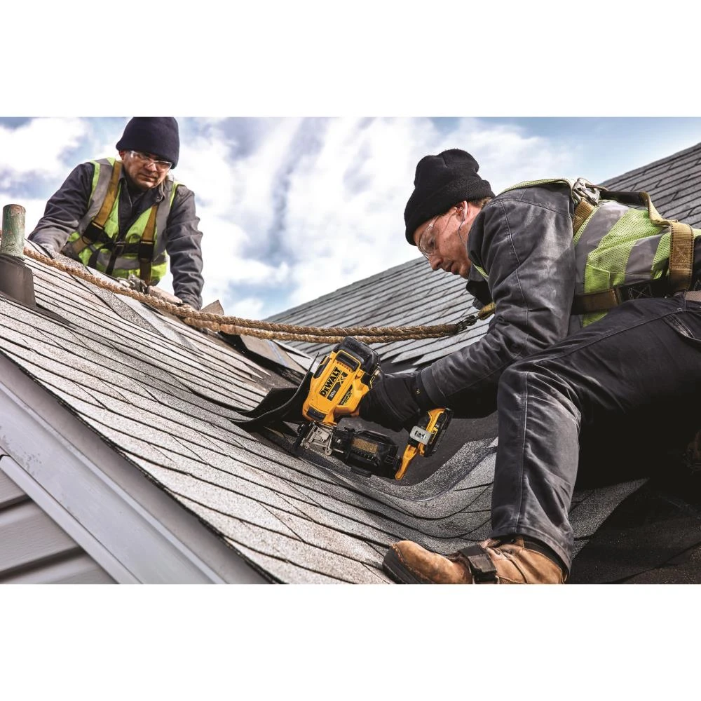 The 20V MAX 15° Cordless Coil Roofing Nailer delivers cordless convenience ideal for service repairs and small jobs. There are absolutely no hoses, compressors, or gas cartridges required. ItÕs 100% battery-powered so the pro can show up and get to work right away. The 20V MAX 15° Coil Roofing Nailer can drive the full range of roofing fasteners from 3/4″ to 1-3/4″. Get the job done quickly and efficiently with bump actuation mode and tool-free depth adjustment that provides precise nail placement.