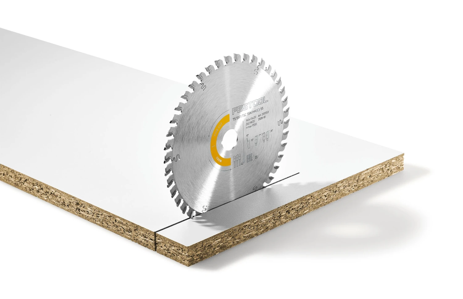 The fine-cut saw blade for clean and splinter-free cross cuts in solid wood, laminated or veneered sheet materials and acrylic glass.