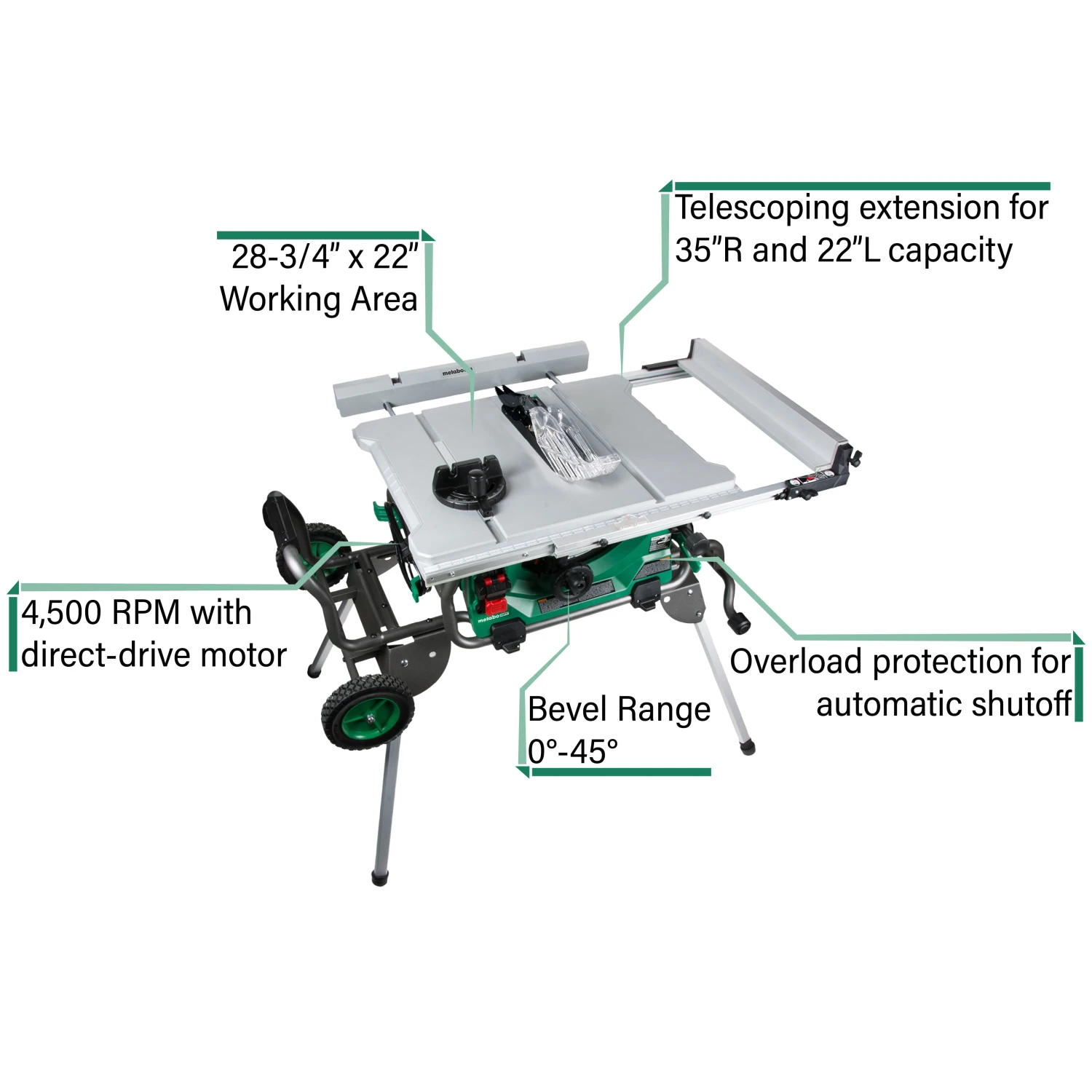 The C10RJ(S) 10″ Job site Table Saw features a 15-Amp motor with 4,500 RPMs, and is engineered for rip-sawing and cross-cutting of ordinary wood, hardwood, plywood and composite wood materials. The fold & roll stand is designed with sturdy legs for easy set up and breakdown, providing stability to the table saw while in use. The stand also incorporates wheels to ensure the user can maneuver through tough terrain with ease.