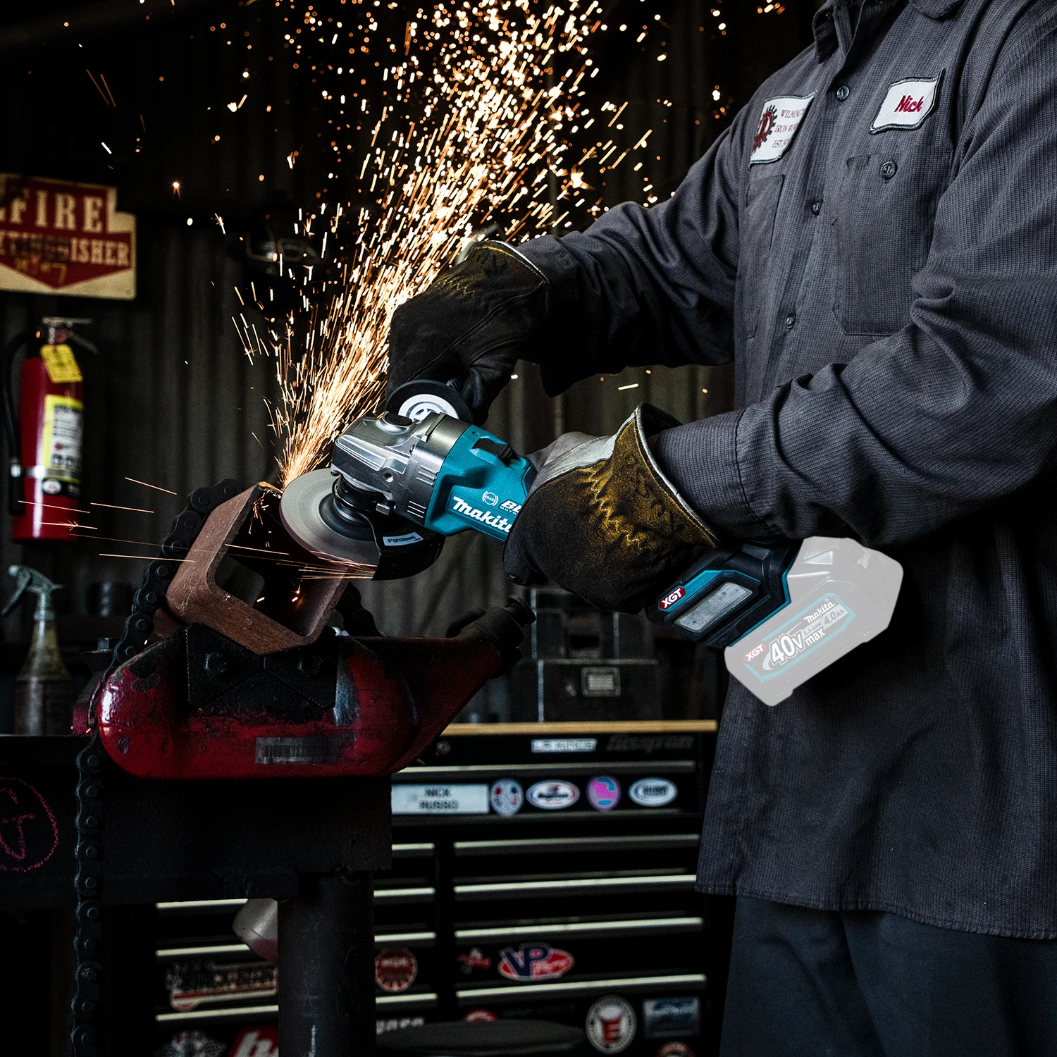 The 40V max XGT Brushless Cordless 4-1/2″ / 5″ Cut-Off/Angle Grinder with Electric Brake (GAG01Z, tool only) delivers corded grinding performance without the cord for the most demanding applications. It’s powered by a Makita-built brushless motor which delivers 8,500 RPM for heavy-load applications and increased power and speed. The GAG01Z offers up to 60% faster cutting speed when cutting #5 (5/8″) rebar. It is ideal for grinding and cutting a wide range of materials including tile, concrete, pipe, conduit, and more.