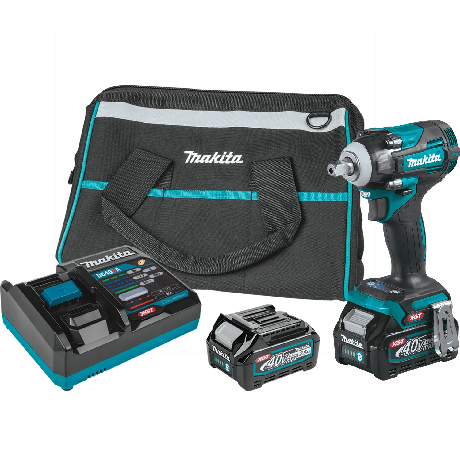 The 40V Max XGT Brushless Cordless 4-Speed 1/2″ Square Drive Impact Wrench Kit w/ Detent Anvil (GWT05D) provides improved fastening control, ideal for automotive, installation, and fabrication trades. The Makita-built brushless motor delivers 465 ft-lbs of Nut-Busting Torque and 260 ft-lbs of Fastening Torque to out-power similar impact wrenches in heavy-load applications.