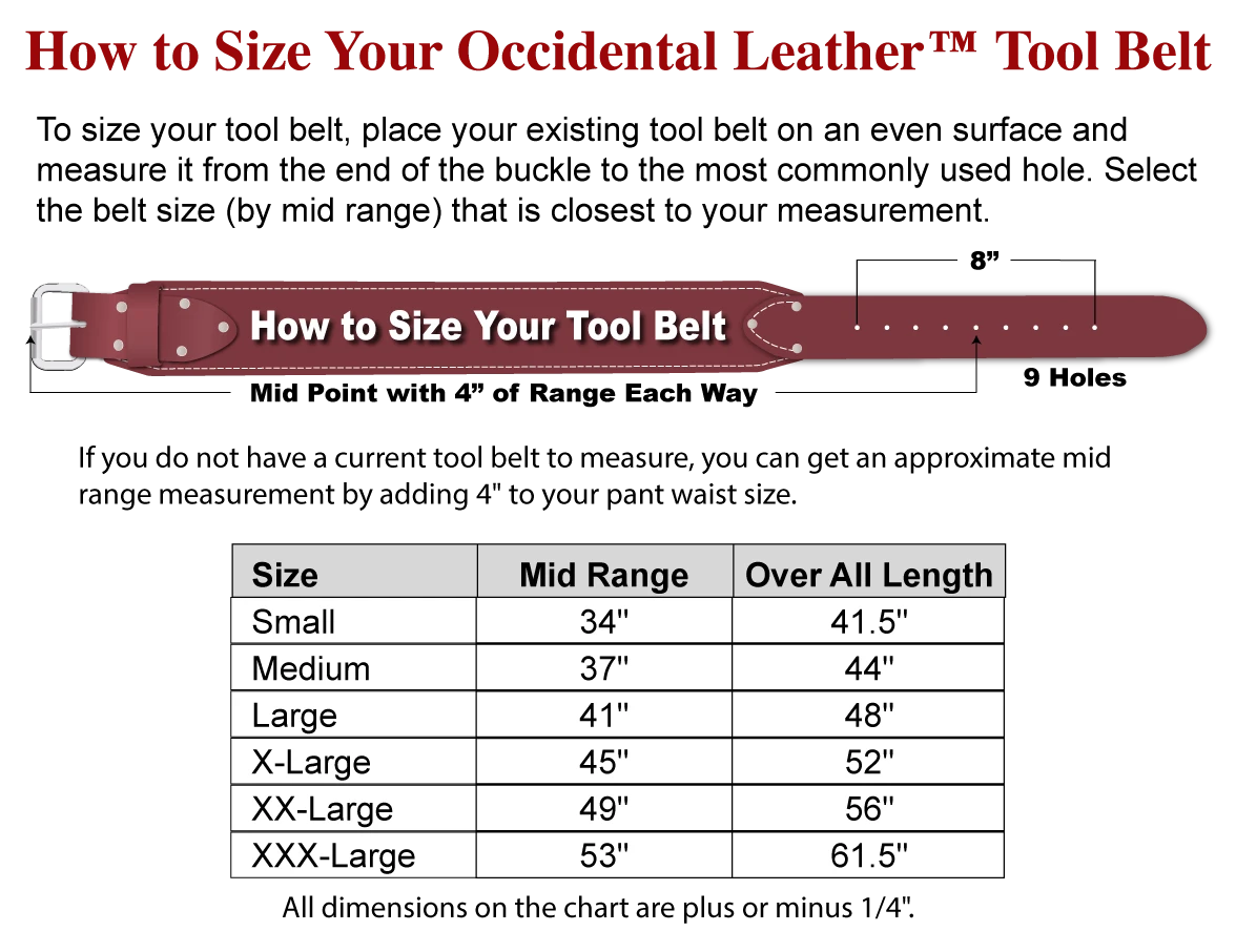 Occidental uses only the finest materials to construct the foundation of your tool system. Our extra wide belts provide unrivaled comfort.