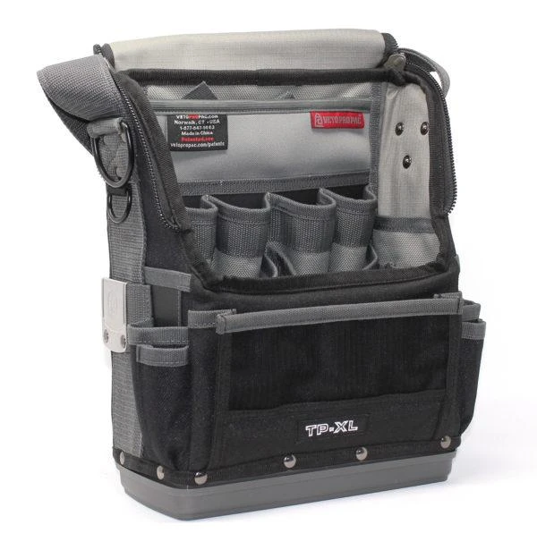 The TP-XL is a “one-sided” closable mid-sized tool pouch that holds a variety of tools, meters, fasteners and wire nuts along with a tablet pocket on the backside to help Techs needing a compact bag for a variety of service calls and installs.