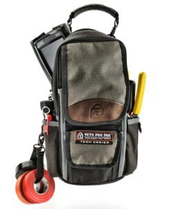 The TP4 is a clip-on diagnostics bag designed to hold a meter and a variety of tools. When not in use it can clip onto any model Veto tool bag’s tape clip or D-Rings. It features 20 pockets of various sizes including bit pockets, vertical long shank pockets, a detachable rubber handle and other features that will accommodate the most commonly used tools to diagnose and repair problems on service calls.